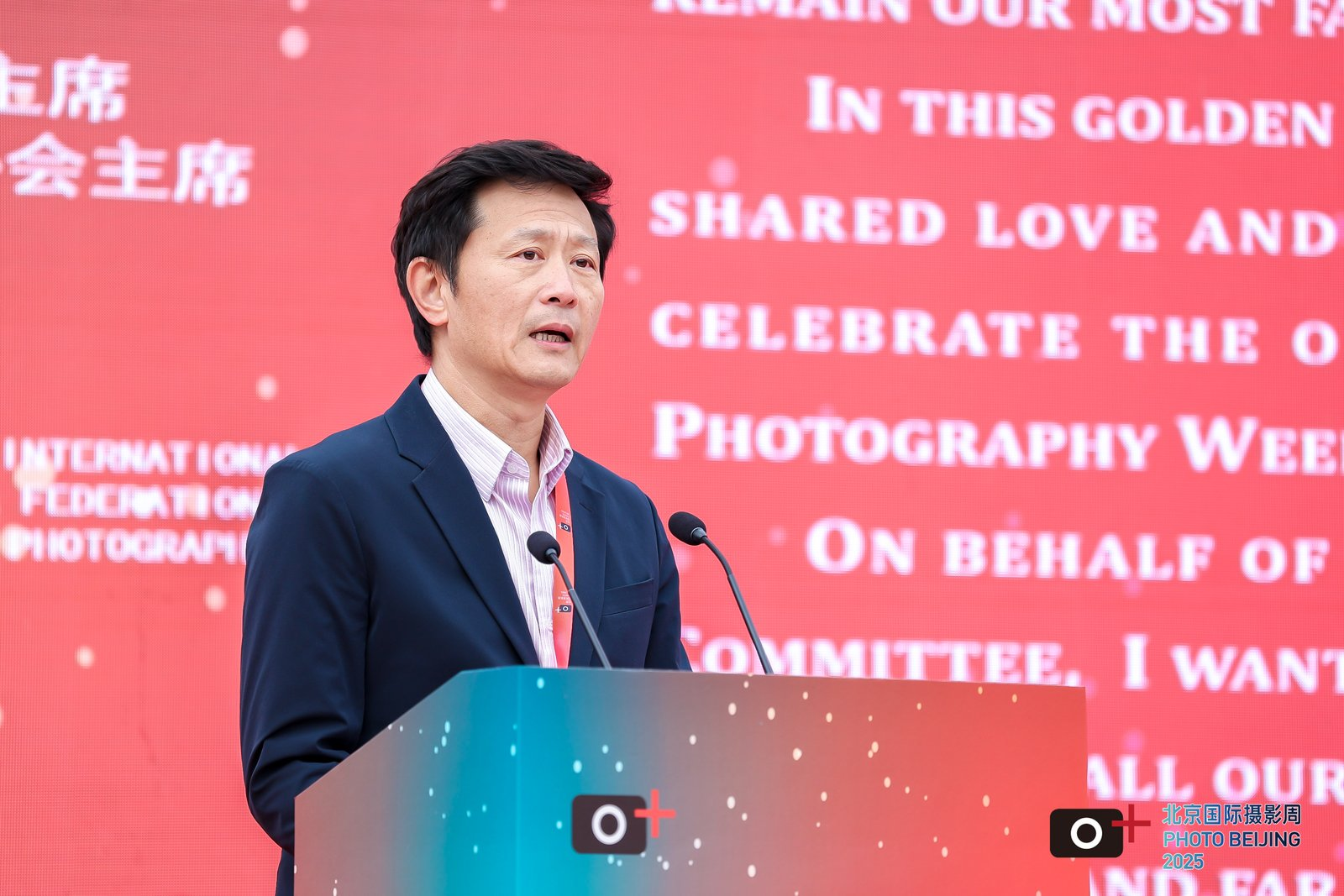 开幕式上,北京国际摄影周组委会主席李舸、国际摄影艺术联合会(FIAP)副主席郑培书、国际摄影家联盟(GPU)主席马诺利斯·米察基斯、韩国写真作家协会理事长兪琇灿分别致辞。