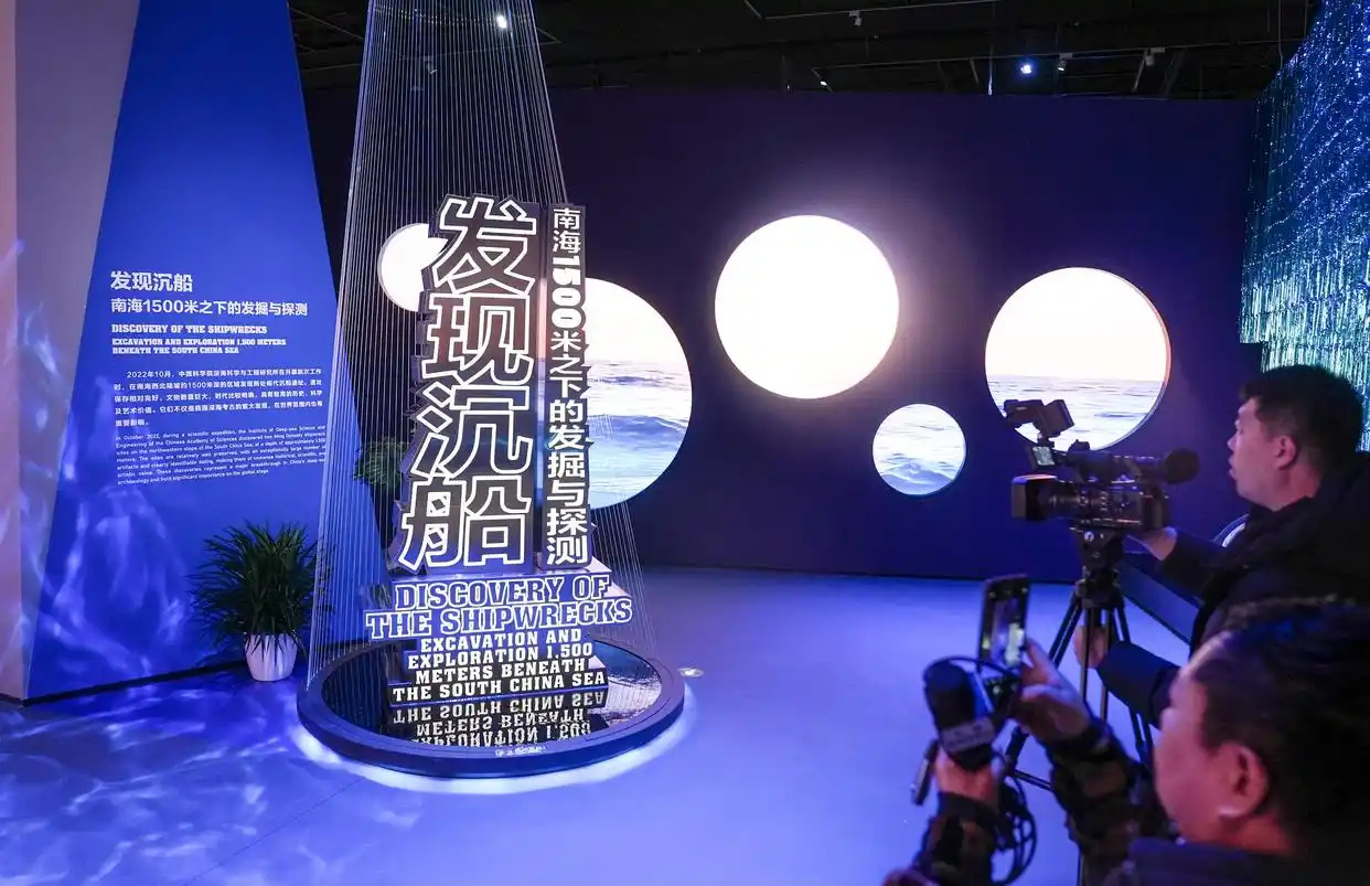 12月16日,“向海而行——中国南海西北陆坡海域深海考古特展”在北京大运河博物馆开幕,377组件文物配合水下影像、考古故事,带领观众一探1500米下的深海,了解南海深海考古的重要发现。