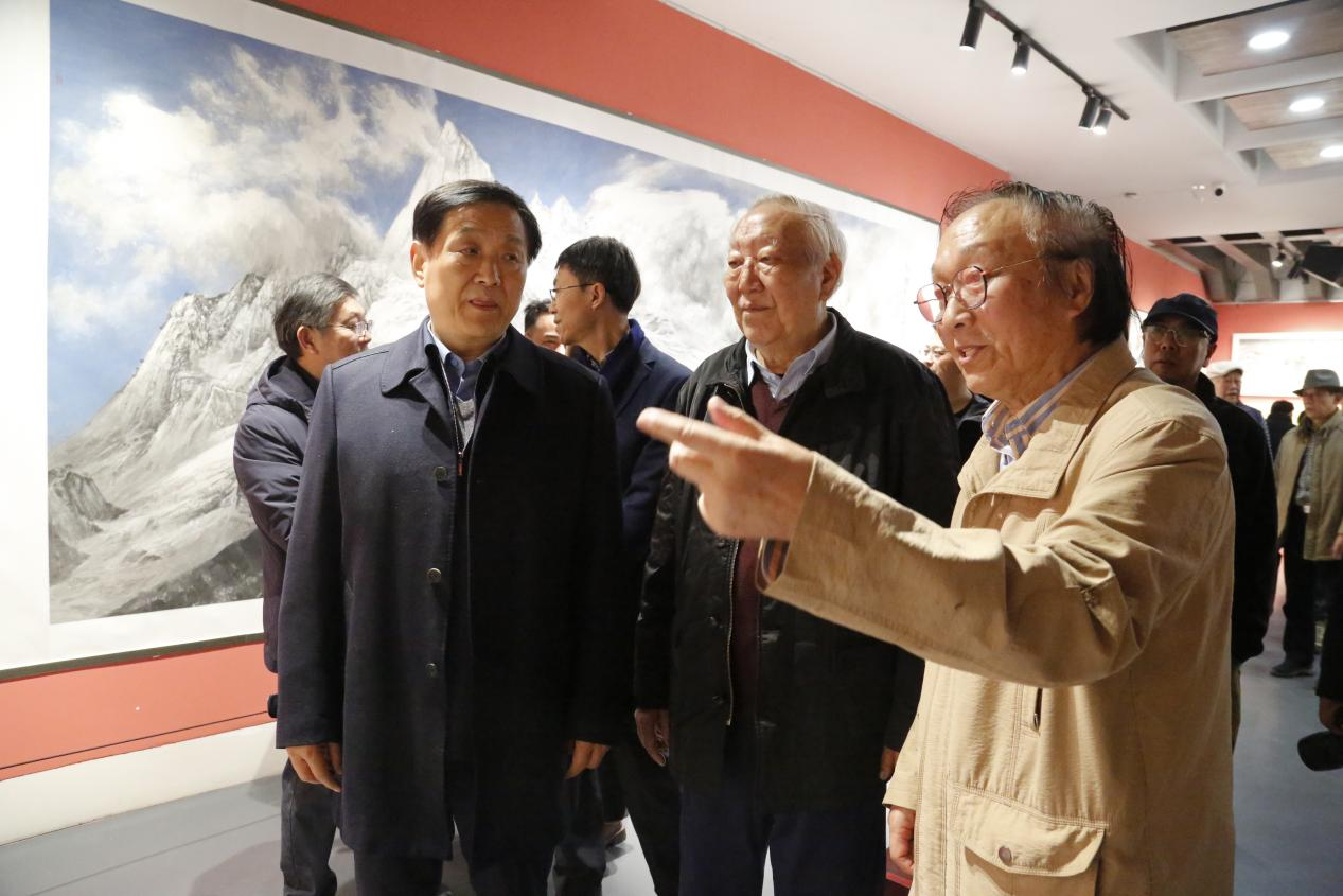 师恩钊在讲话中说,从五代和北宋时期伊始,即有南北两大画派统领着中国山水画坛,当时便有“荊关董巨”四大家之称谓,可见历史上南北画派是在“和而不同”的发展中,为辉煌的中国绘画史做出贡献。在现代化高速发展的今天,北派山水已呈重振发展的复兴之势,今天已形成一支新北派山水的画家队伍。南派山水在新时代里也在不断创新中发展,形成了多元化的崭新面貌。当前有一个时兴的说法,即在画界只有高原,没有高峰,但对每一名画家,都不能遏止他向高峰攀登的信念和付出的努力。