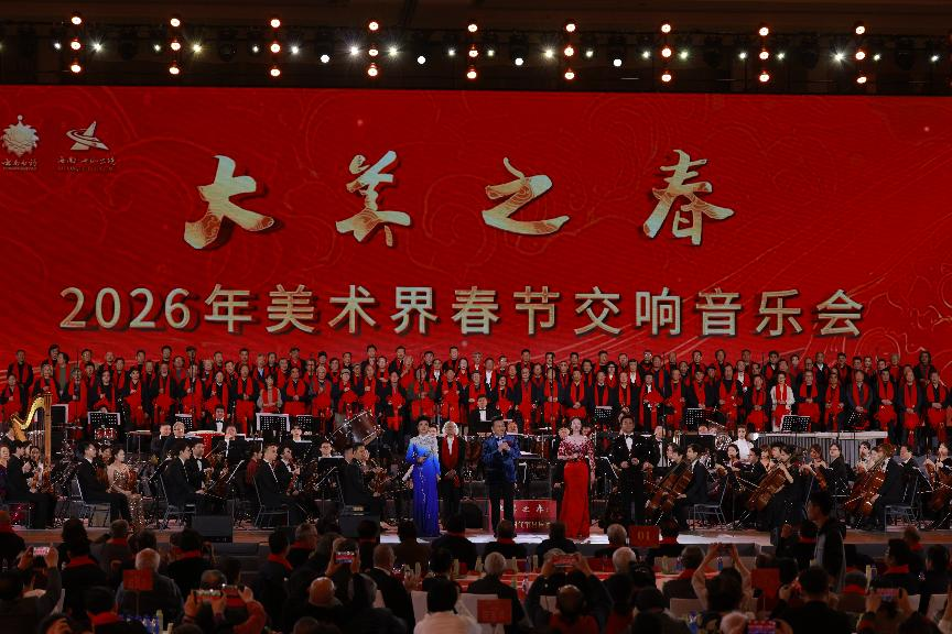 丹青绘就时代韵,骏马驰骋盛世春。2月2日,由书画频道、中国国家画院、中国艺术档案学会共同主办的“大美之春——2026美术界春节交响音乐会”在国家会议中心华彩启幕。这场承载着十三载光阴积淀的艺术盛典,以恢弘气度铺展开新时代美术事业的壮丽画卷,奏响了新征程上文化自信自强的磅礴乐章。来自文化和旅游部、中国文联、中国美术家协会、中国书法家协会、各大美术院校,书画频道中国书画艺术研究院,全国各省、市、自治区、直辖市美术艺术机构领导和艺术家代表千余人齐聚一堂,展现中国美术界守千年正脉、开时代新局的昂扬风貌。