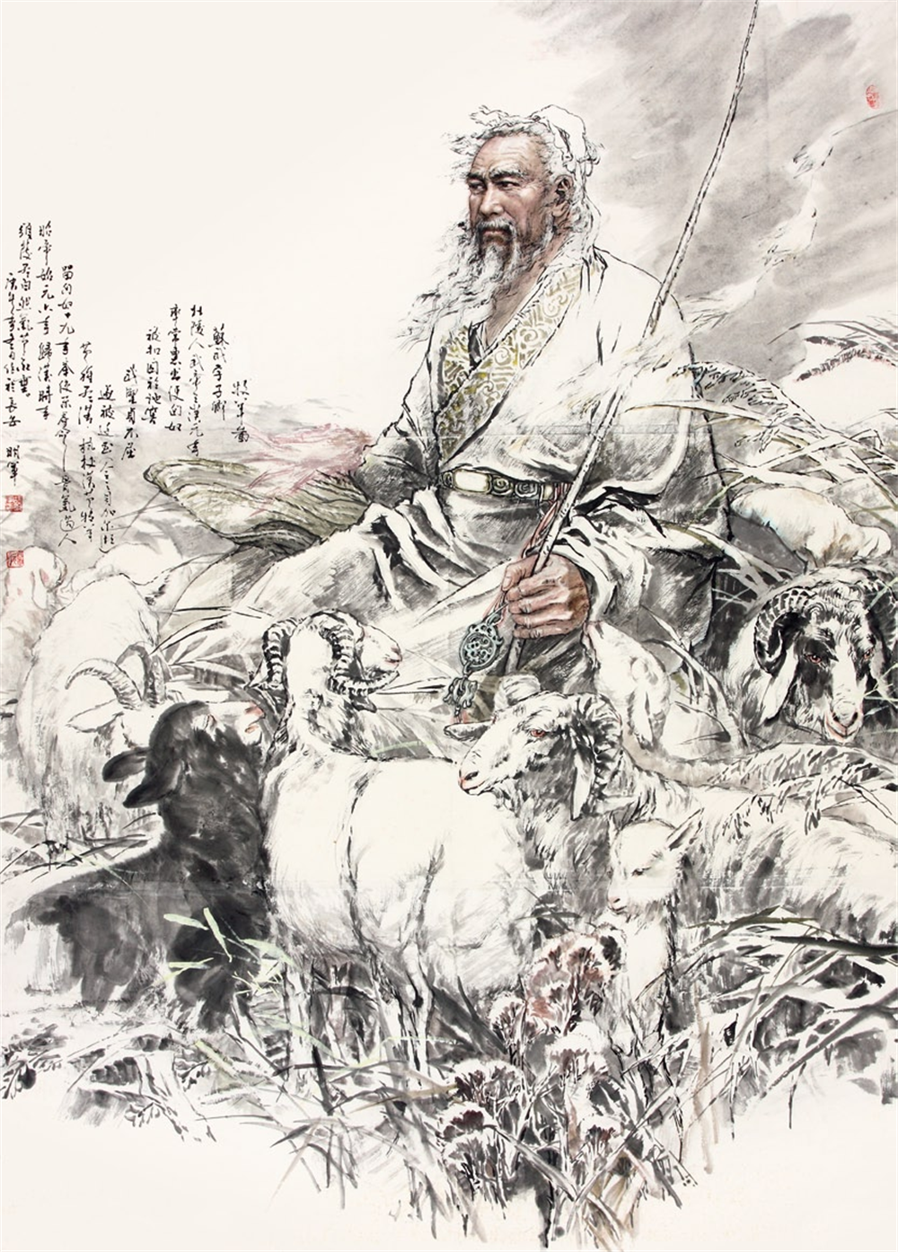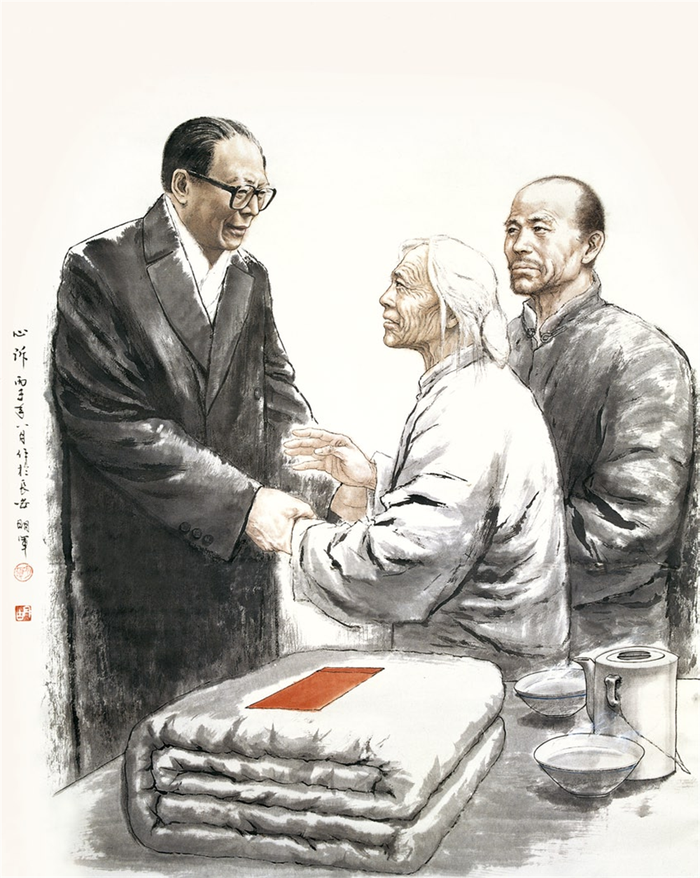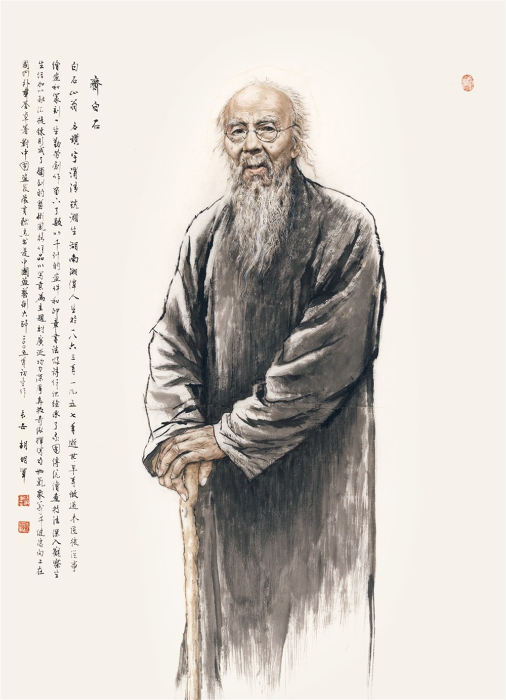 他潜心研习探索国画人物60余年,以坚定的文化自信和历史责仼感,苦心孤诣,创作了大量优秀的古今英雄人物和讴歌人民的糈品力作。用艺术记录历史、讲好中国故事;用好作品的吸引力、感染力宣传真善美,弘扬中华民族精神和主弦律。他善于运用中西结合的独到笔墨和形式语言,丰富的思想文化内涵,精准的造型,生动鲜活的线,使他笔下的人物,神态气概逼真传神。