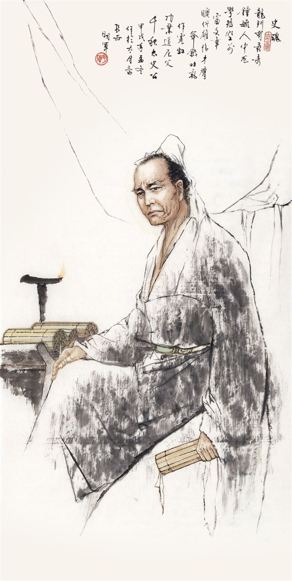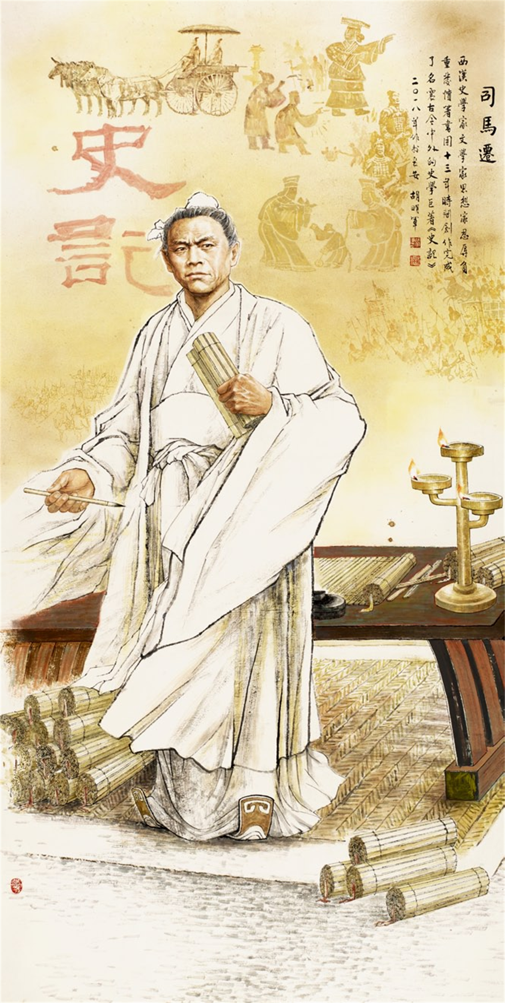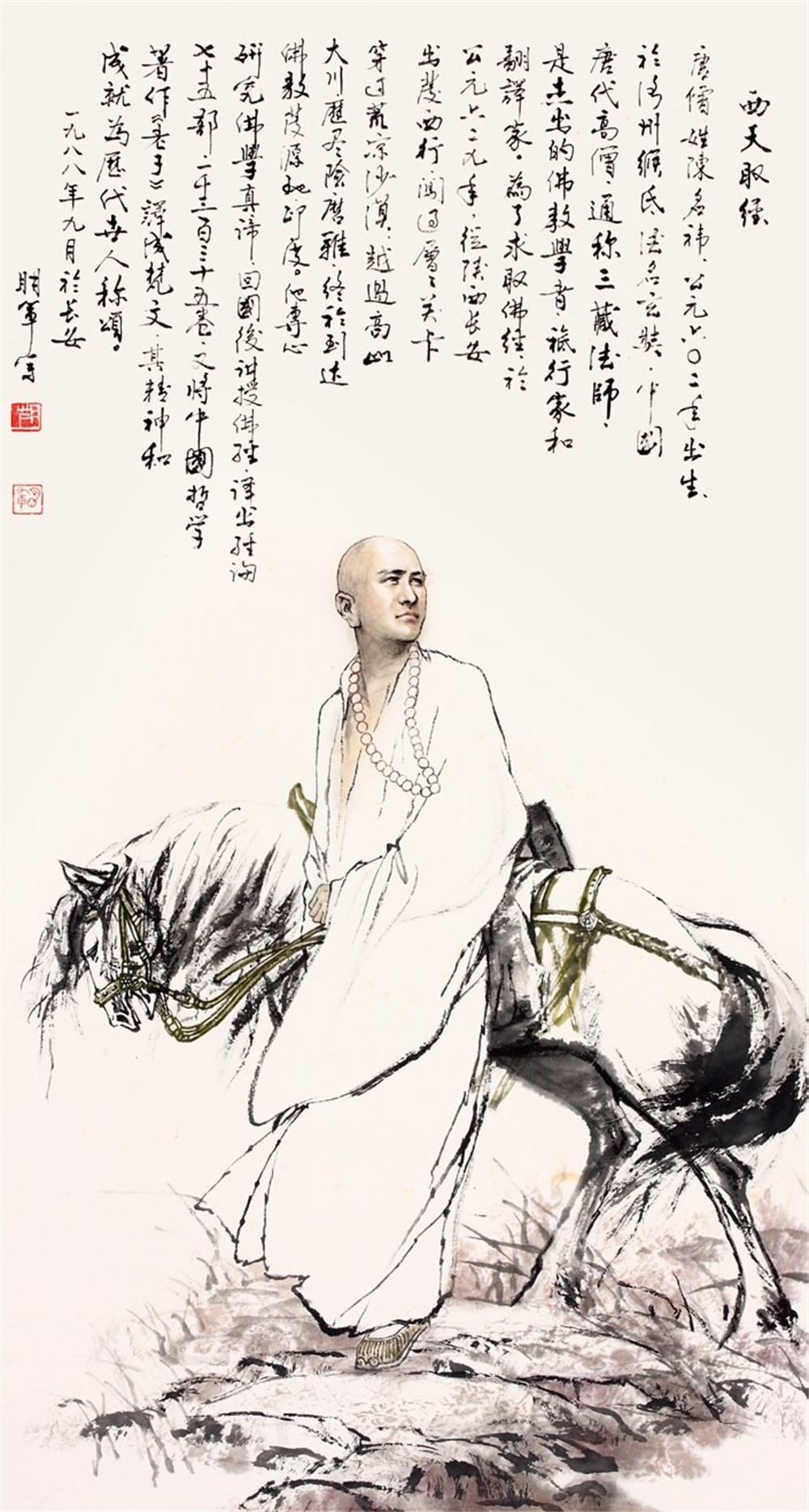 他潜心研习探索国画人物60余年,以坚定的文化自信和历史责仼感,苦心孤诣,创作了大量优秀的古今英雄人物和讴歌人民的糈品力作。用艺术记录历史、讲好中国故事;用好作品的吸引力、感染力宣传真善美,弘扬中华民族精神和主弦律。他善于运用中西结合的独到笔墨和形式语言,丰富的思想文化内涵,精准的造型,生动鲜活的线,使他笔下的人物,神态气概逼真传神。